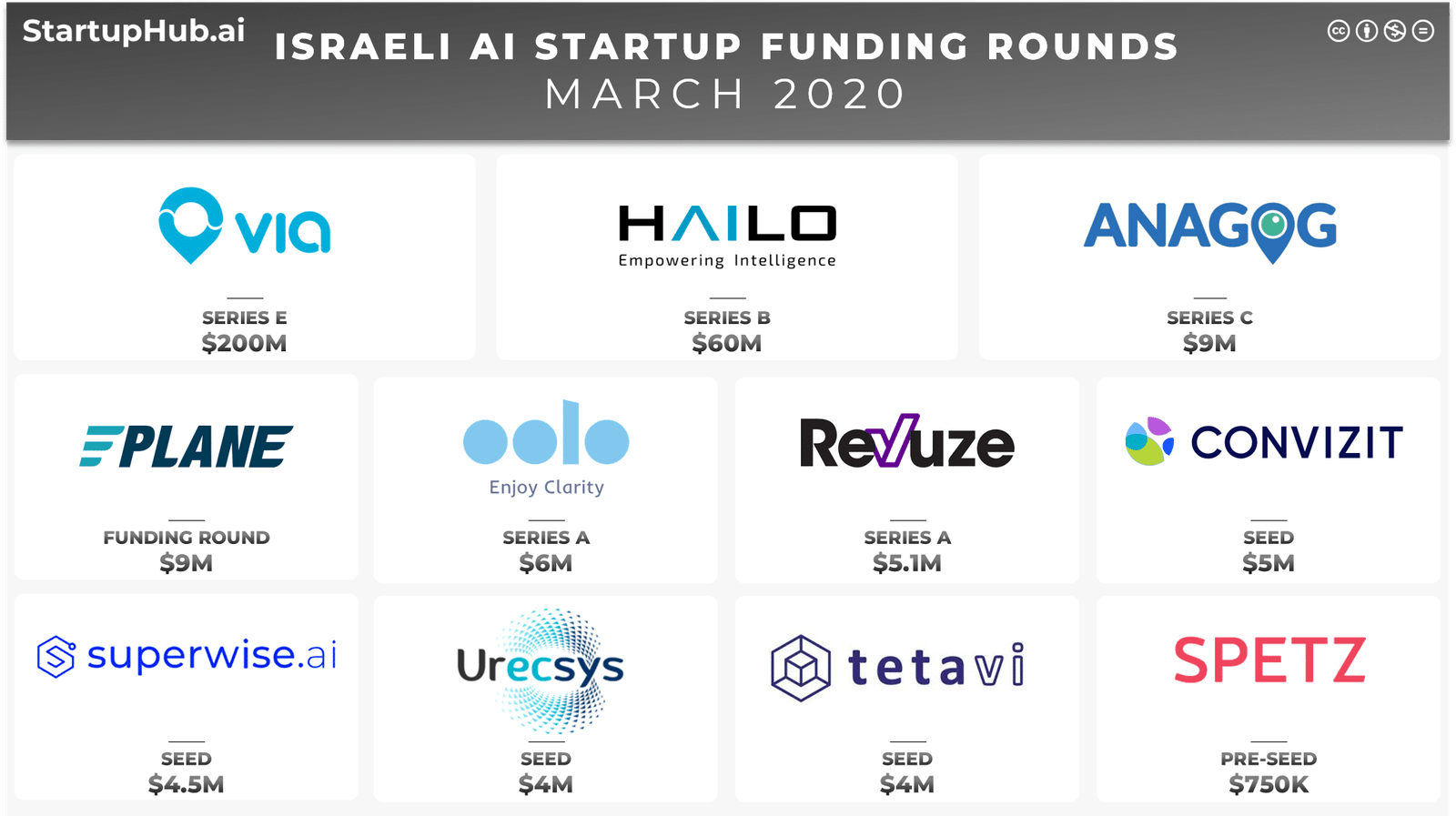StartupHub.aiMarch 2020 Israeli AI Startup Funding Rounds For the month of March 2020, Israeli AI startups raised $308 million in private funding across 11 funding rounds, up from $238 million raised in March…. 11 hours ago